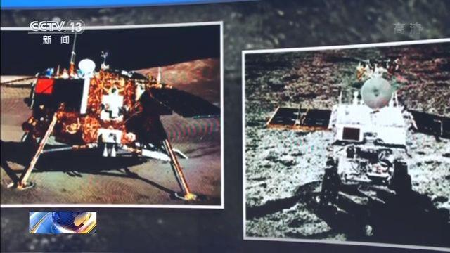 2019年1月2日,嫦娥四号完成了人类首次月球背面软着陆。玉兔二号月球车也成功落地,在月球远端留下了**条轨迹。大屏上的两张照片就是成功着陆后,玉兔二号和嫦娥四号互相给对方拍的**张照片。