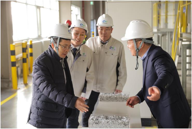 全国人大代表周云杰(左一)在海尔再循环互联工厂调研
