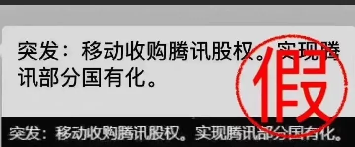 10月24日,市场上有传言称,“中国移动收购腾讯部分股权,实现腾讯部分国有化”。对此腾讯方面向观察者网回应称,该消息不实。