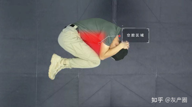 注意:手肘和膝盖连起,形成空腔区域,这样可以有效地防护胸腔,还可以保留足够空间获取空气。