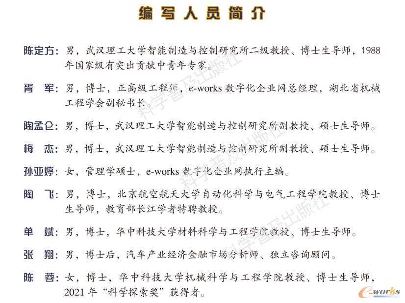 院士推荐:中国工程院李培根院士为本书作序 近年来,智能制造在中国被列为制造强国的主攻方向,自然成为政界、金融界、学术界、工业界等领域关注的热点。 真正要通过智能制造助力制造强国,不仅需要一大批熟练掌握智能制造相关技术的专业人才,还需要社会中更多的人士(如国家工作人员、投资者、学术界和工业界中非智能制造技术直接相关者等)能够理解智能制造的意义及关键点等,从而营造一个能配合、支持、协同企业乃至整个国家推进智能制造的良好人才生态环境,更需要激发一批青少年对智能制造的兴趣和热爱,他们是未来肩负制造强国重任的人才!因此,适合非专业人士及青少年了解智能制造的普及性读物亟须面世。 一本关于智能制造的普及性读物,要使非专业人士摆脱犹如盲人摸象般“无明众生”之障,而能睹其貌,识其要,谈何容易?即使把握了撰写的正确方向和思路,搭建他序了一个良好的架构,真要动笔时,何其难也:去细节而见其要,去复杂而见真谛,去庞杂而见联系,去艰涩而觉趣味……没有对智能制造的深刻洞见,没有对企业智能制造实践的广见多识,没有对智能制造融会贯通、化繁为简的能力,实不可为。然而,让我惊异的是,陈定方教授等人做到了,他们编写的《智能制造》正是体现上述特点的佳作。 《智能制造》从制造展开,谈古论今,从“神奇漫长制造史”开始,回顾了近现代工业革命和世界制造业发展的曲折历史、酝酿的背景、宝贵瞬间、变革的科学技术力量与人物,及至当今主要工业发达国家推进智能制造的“各国秘籍”,展望了智能制造未来发展的美丽画卷。该书从“智能制造点线面”系统介绍了智能制造内在含义、系统架构,从广度、梯度与深度等几个层次剖析了各个维度含义。读者从书中可以了解到变革时代的前沿技术如何给智能制造的发展增加引擎动力。这本书能够带领读者进入一个感觉新奇且极易沉思遐想于其中的世界。 特别要指出的是,即使对于智能制造相关的专业人员,这本书也值得一读。毕竟智能制造涉及众多的学科、行业,覆盖企业所有的过程、业务、资源等,其复杂性可想而知,任何一位专业人员很难通晓一切,而学习《智能制造》至少可以使个体的专业技术人员在认识智能制造的过程中减小自身专业的局限性。书籍出版后记:人工智能技术快速发展带来的新的思考 本书即将付梓之际,美国开放人工智能研究中心(OpenAI)于2022年11月30日发布了聊天机器人程序ChatGPT。它拥有语言理解和文本生成能力,能与人对话,能根据上下文的语境与人进行互动,像人类一样思考、交流。它可以完成诸如创作,翻译,撰写邮件、视频脚本、文案、代码等任务,并给行业在应用实践方面带来诸多想象空间,正确的应用能使它成为人类的好助手。 技术的革新与进步在于进化、开放。ChatGPT促使传统的搜索引擎技术积极变革。ChatGPT还在快速成长优化中,只要不断学习训练语境要素,它就能不断变得更快、更准、更强且更智慧。科学技术是一把双刃剑,科学、规范地使用先进技术才能够创造人类社会更加美好的未来,ChatGPT亦是如此。作者简介 作者简介:陈定方,湖北武汉人,武汉理工大学教授、博士生导师,武汉理工大学智能制造与控制研究所所长,***中青年有突出贡献专家,享受国务院政府特殊津贴,湖北省暨武汉市机械设计与传动学会荣誉理事长,江西省2012年“赣波英才555工程”柔性引进的高端人才。曾主编和出版科普著作《五彩缤纷的虚拟现实世界》(2015年科技部优秀科普作品奖及2016年中国科普作家协会优秀科普作品银奖)、《机械的CAD与专家系统》、《现代机械设计师手册》、《虚拟设计》、《现代设计理论与方法》等。 本书通过严谨专业的科普语言、丰富生动的例子与图画、贯穿其中的关键人物与发展历史、多学科交叉的前沿科技,多方位呈现了智能制造的历史、未来及内涵,对人们未来生活的方方面面的影响,以及作为引领变革的核心技术的重要地位,从而奠定青少年重基础、爱科学、勤思考的成长基石,激发他们关注前沿科技、畅想人类未来。 本书的科学文本创作团队是湖北省机械工程学会,由陈定方、胥军、陶孟仑、梅杰等编著。本科普书籍的创作团队有深耕智能制造数十年的专家学者,有长期工作在企业智能制造实践前沿的行业翘楚,有新理念新方法的提出者与集成者,有交叉跨学科领域的青年科学探索专家,也有长期工作在相关学科领域进行科普实践、创新创造的青年学者。本书**章由胥军、孙亚婷撰写,第二章由陶孟仑、梅杰、陈定方撰写,第三章由陶孟仑、陈定方撰写,第四章由梅杰、陈定方撰写,第五章由陈定方、胥军、孙亚婷、陶飞、单斌、张翔、陈蓉撰写。全书由陈定方、胥军统稿。 本书的出版得到了“丁汉院士智能制造科普工作室”的大力支持,及e-works数字化企业网CEO黄培博士、武汉理工大学智能制造与控制研究所的博士研究生李渤涛等人,以及郑州大学李普林博士、乔洁硕士和中铁第四勘察设计院集团有限公司张银龙工程师等为本书撰写所作出了贡献。湖北省机械工程学会理事长丁汉院士、秘书长朱永平、监事长陈万诚为本书的出版提供了大力的支持与帮助。同时感谢湖北省科学技术协会、武汉市科学技术协会对本著作的支持,感谢科学普及出版社为将本书打造为精品出版物所付